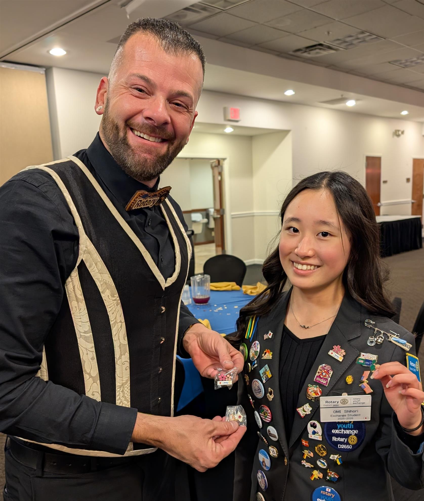 District 7910 is currently hosting Rotary Exchange Student Shihori Omi from Japan. Shihori lives with a host family in Acton and is sponsored by the Acton-Boxborough Rotary. She attends Acton-Boxborough Regional High School as a 10th grader. She will be here for the full 2025-26 academic year. In November, she attended the District 7910 Foundation Dinner, where she charmed everyone with her big smile and enthusiasm. She even exchanged pins with District Governor Johnny Ahern. She's looking forward to joining Interact at her high school.